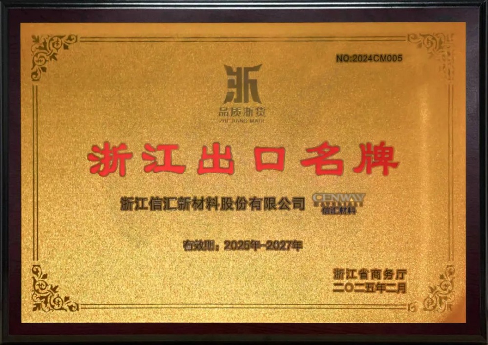 喜報(bào) | 信匯材料榮獲“浙江出口名牌”稱號(hào)